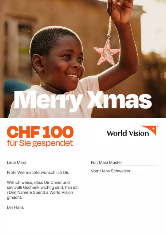 Neben der Geschenkspende steht Ihnen auch eine kostenlose E-Card zur Verfügung – ein persönlicher Gruss, der Freude schenkt und unsere Arbeit bekannter macht.